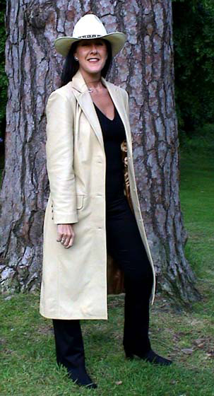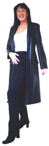 | Long line calf length tailored ladies leather jacket |
