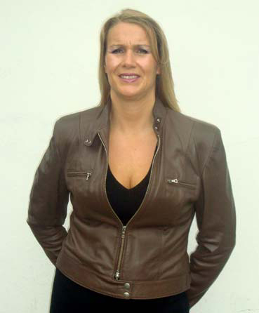 | Hip length tailored ladies leather biker jacket |